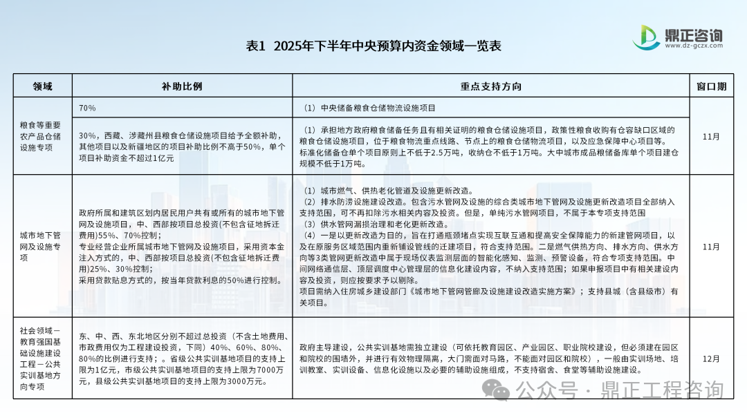 導(dǎo)讀:2025年下半年,中央預(yù)算內(nèi)資金與地方政府專(zhuān)項(xiàng)債券的申報(bào)通道進(jìn)入最后沖刺階段。國(guó)家資金投放的“黃金窗口”正在收窄,為搶抓政策機(jī)遇,我們結(jié)合最新政策文件,對(duì)申報(bào)領(lǐng)域、支持方向及申報(bào)要點(diǎn)進(jìn)行了全面梳理,助您搶占資金申報(bào)先機(jī),精準(zhǔn)對(duì)接國(guó)家資金,推動(dòng)項(xiàng)目落地開(kāi)花!